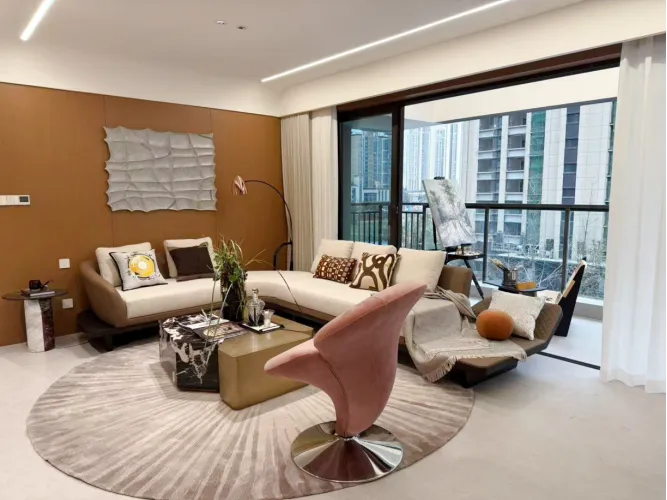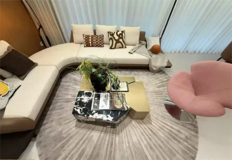 角落里,紫粉色花瓣旋转休闲椅以柔美的线条与浪漫的色彩,打破空间的沉稳,旋转设计增添互动趣味,随手一拍便是ins博主同款氛围感,为客厅注入灵动气息。