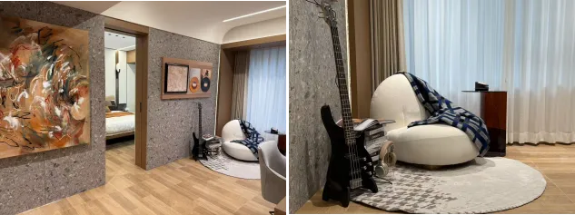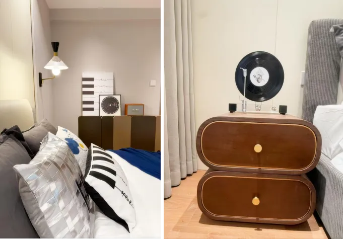 男孩房蓝色的局部点缀,为空间注入少年的活力与澄澈,与原木基调搭配,既保持了整体风格的统一性,又彰显了孩子的个性。在这里,音乐不仅是装饰,更是陪伴成长的伙伴,激发孩子的创造力与想象力。