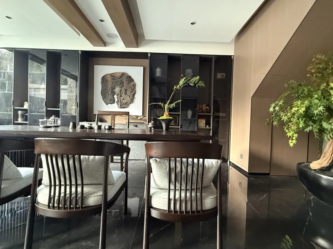 软装设计以峨眉山生态肌理为底,萃取峨眉雪芽、灵猴、云海等在地元素,将山野的野趣与生活的精致巧妙融合,让每一处空间都成为承载仙山灵韵的秘境。 品茗区禅茶一味的静谧时光,禅茶文化是峨眉山千年沉淀的灵魂。