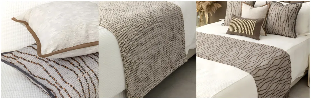 客房搭配手工编织的粗糙肌理,棉麻床品、窗帘,呈现自然褶皱的慵懒质感,透气亲肤的特性更添居住舒适度。