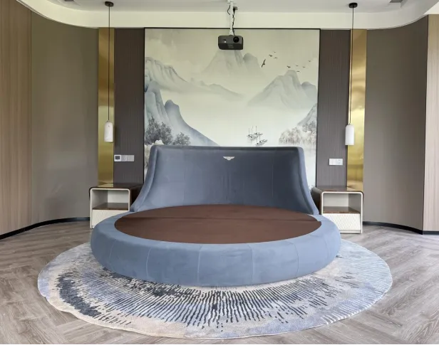 套房空间以圆床打破传统中式空间的方正束缚,用原木、棉麻、云石等天然材质传递舒适体感。借由木格栅、水墨画、等中式元素,勾勒新中式的雅致韵味,让民宿套房既是放松身心的休憩之所,也是感受东方美学的旅居驿站。
