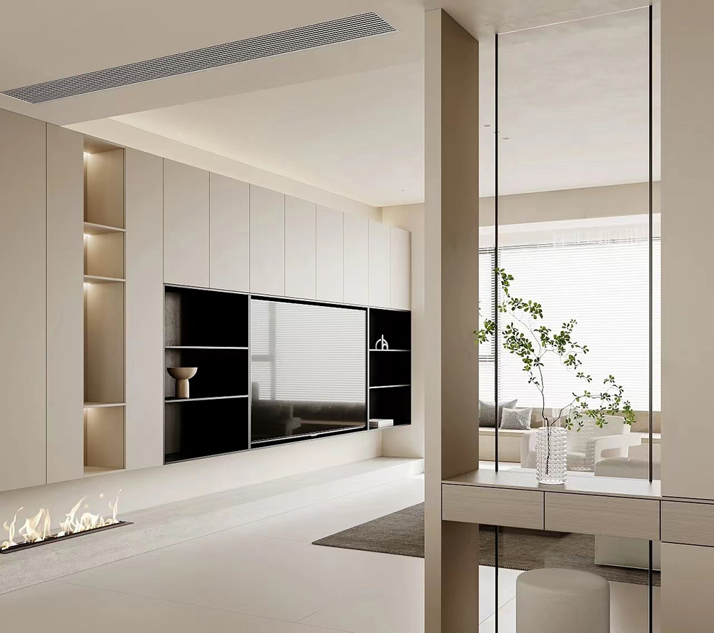 现代极简风提倡“简”,期望达到“以少胜多、以简胜繁”的效果。目之所及的设计元素和装饰、家具,简化到最少的程度,突出强调功能性设计,设计线条要简约流畅。常配色彩有黑、白、灰、棕、术色,视觉上无压力。会使用石纹、玻璃、木饰面、本格栅、金属等,增家空间的现代感和利落感。