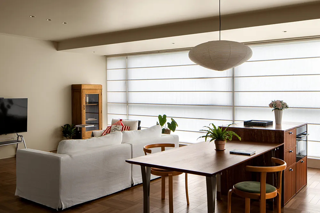 这处住宅被江河的秀色所环抱,居者无需远行,只需安坐客厅一隅,便能将一河碧波与四时天光尽收眼底,静赏晨昏交替、光影流转。空间与自然在此无界交融,共同谱写出一曲宁静而悠然的栖居诗篇。